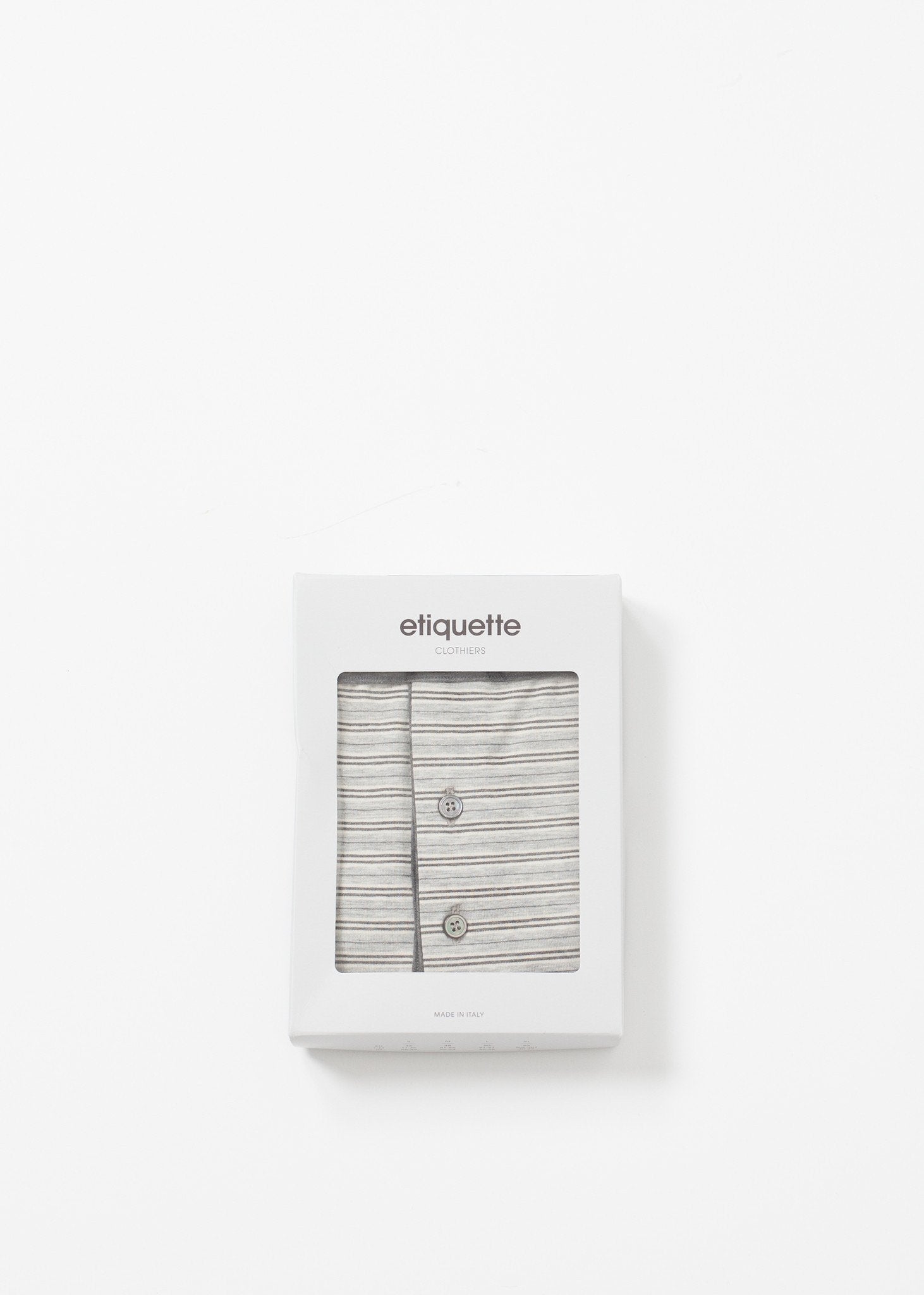 This prewashed cotton trunk is composed of the finest gauge for the softest materials. Offers stretch and softness in wear. Elastic waistband for ease. Etiquette. Color Heather Grey. 95% Cotton, 5% Elastane. Made in Italy.